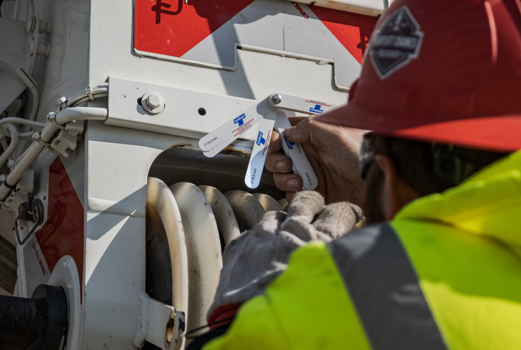 You can also use calipers during monthly inspections to measure rope diameter. All inspections must be documented, and remove the rope immediately if any discard criterion is met.