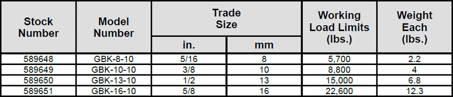 GrabiQ Self-Locking Hook (Clevis Type) GBK Specs