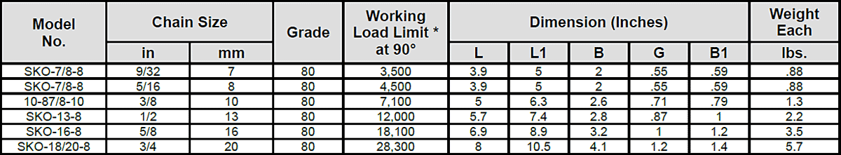 • Excellent choice for single leg sling of chain, synthetic or wire rope